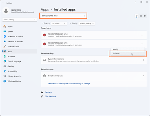 Cách gỡ cài đặt SOLIDWORKS