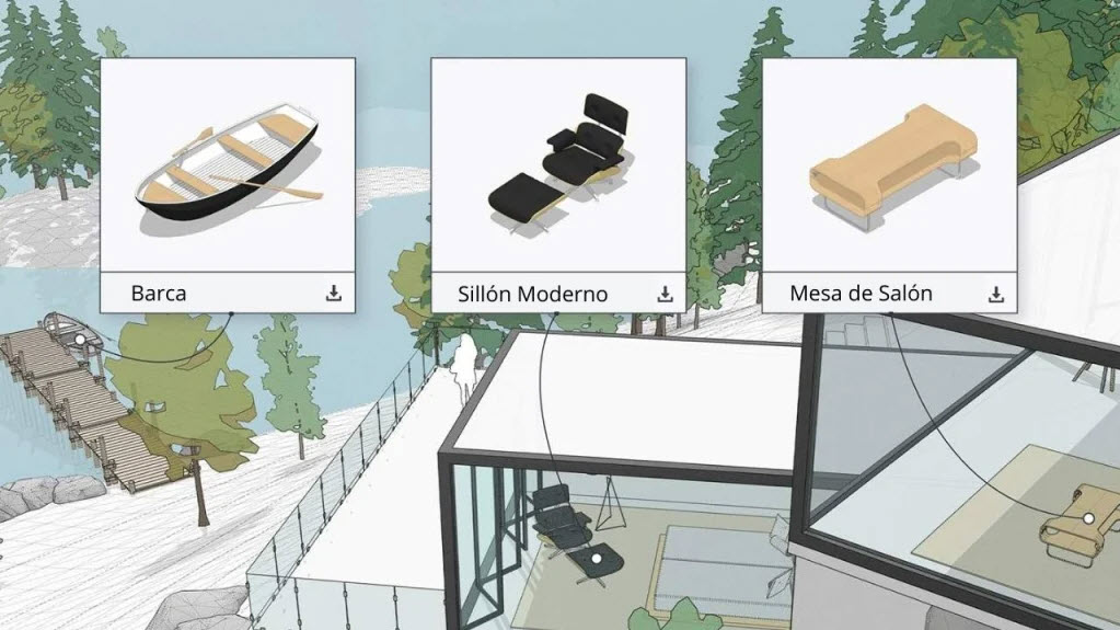 3D Warehouse là trang chuyên chia sẻ các mẫu thiết kế trên khắp thế giới. Người dùng có thể chia sẻ các mẫu thiết kế của mình hoặc tìm kiếm các mẫu thiết kế khác. Đây cũng chính là lý do khiến Sketchup là một trong những phần mềm thiết kế 2D, 3D đánh giá khá nhanh. Khi đang thiết kế và bị bí ý tưởng thì có thể vào 3D Warehouse để tham khảo các mẫu khác.